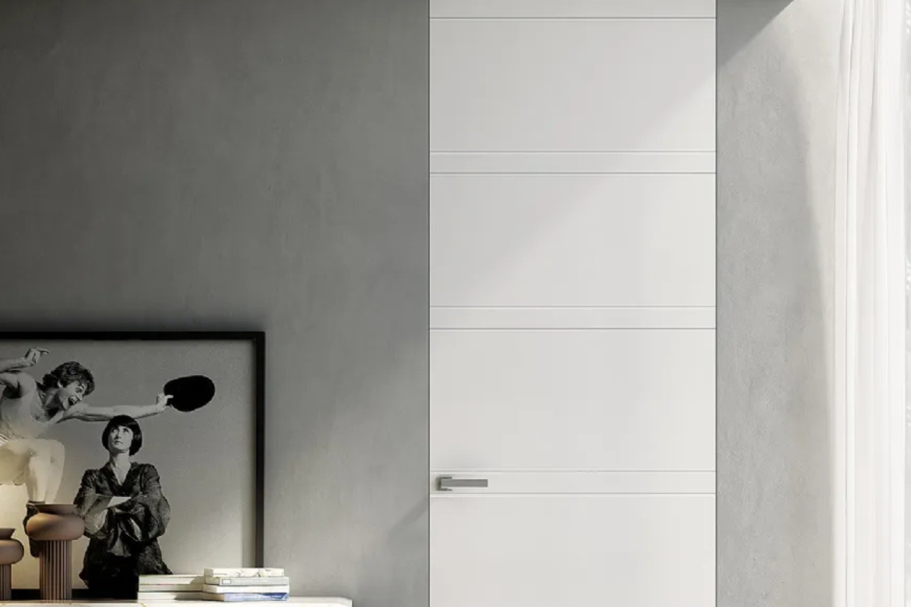 La porta scompare nella parete senza interrompere le linee architettoniche, creando un effetto di grande leggerezza. In molte abitazioni moderne della provincia di Torino e Cuneo, la collezione Minima è scelta per la sua capacità di creare un’atmosfera elegante e sofisticata, dove la porta diventa quasi impercettibile ma allo stesso tempo estremamente funzionale.